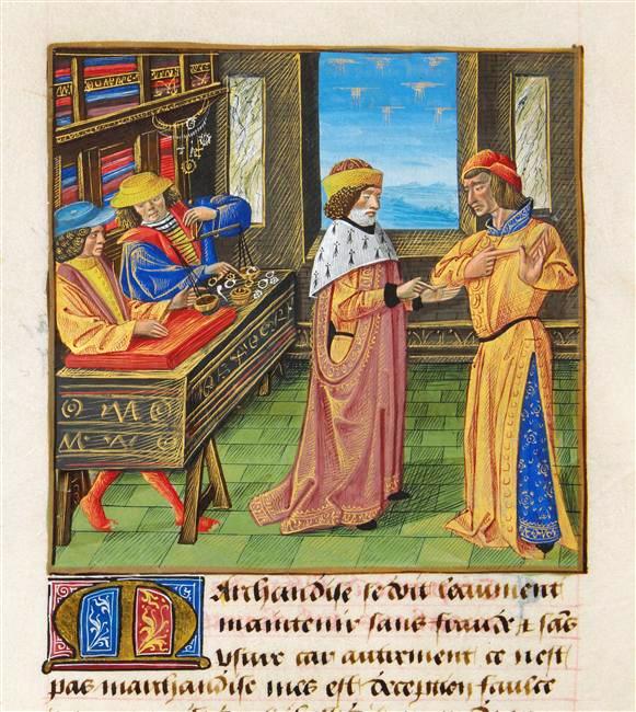 Passagens das cartas de Madalena para Baltazar vieram à mente. Numa carta, Madalena escreve para Baltasar que era um comerciante com negócios na Itália e que se encontrava por lá. Ela mostra os desejos de seu filho: “Você tem que mandar fazer uma bolsa de seda para o Pequeno Baltasar”. Mais tarde: “O Pequeno Baltasar lhe cumprimenta e pede a você que lhe traga um par de meias vermelhas e uma bolsa”. Ainda mais adiante, vemos que o Pequeno Baltasar precisa se sentir à altura de seus colegas ou amigos, porque sua mãe escreve: “Ele quer dois pares de meias, um dos quais um precisa ser igual às meias usadas pelos alunos em Altdorf” [ o editor anota que isso queria dizer, meias da cor da pele ou da cor do açafrão]. Como podemos ver pela iluminura do Livro de Boas Maneiras de Jacques Legrand, datado de 1410, as meias de seda coloridas eram lugar comum na Europa do século XV e XVI.