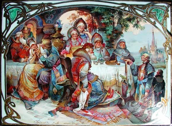 No dia da festa as três mulheres chegaram em magníficas equipagens e a noiva lhes disse: