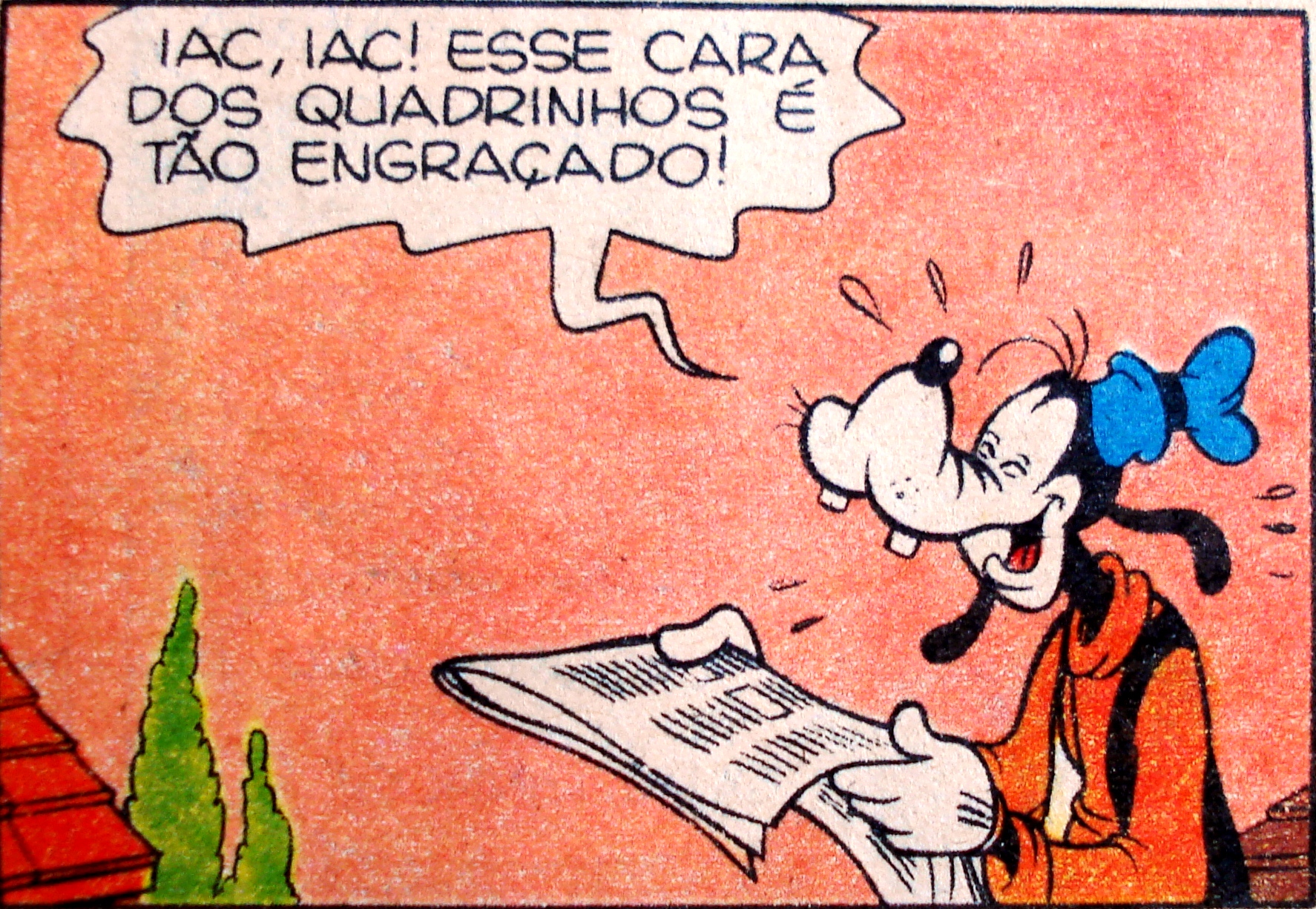 Pateta lê os quadrinhos do jornal, ilustração Walt Disney.