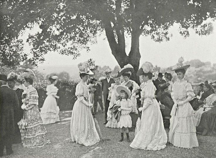 “Os garden-parties antes de 1914 eram algo que merecia ser recordado. Todo mundo se vestia com muita elegância, de sapatos de salto alto, vestidos de musselina com faixas, grandes chapéus de palha italiana com rosas pendentes. Os sorvetes eram deliciosos- de morango, de baunilha, de pistache, de laranja e de framboesa, à escolha — além de várias espécies de doces e de creme de leite, sanduíches, uvas moscatel, e de uma variedade de pêssegos sem penugem. Desses pormenores deduzo que os garden-parties eram quase sempre dados no mês de agosto. Não me recordo de servirem morangos com creme de leite. É claro que não era fácil chegar ao porto. Os que não dispunham de carruagem, se eram idosos ou inválidos, alugavam uma; a gente moça, porém, caminhava uma milha e meia ou duas milhas e vinha de diferentes pontos de Torquay; alguns tinham a sorte de morar perto, outros moravam bastante afastados, porque Torquay é construída sobre sete colinas. Não há dúvida de que caminhar por uma colina em cima de saltos altos, segurando a longa saia na mão esquerda, o chapéu de sol na direita, era uma provação. Mas valia a pena ir ao Garden party.”