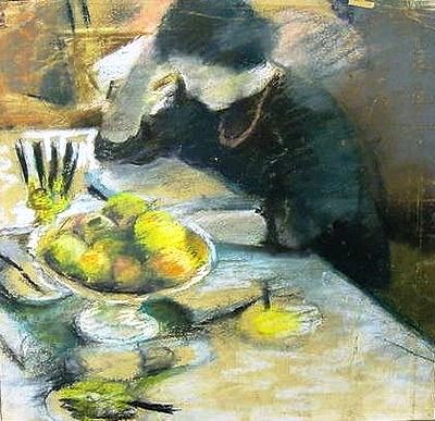 Elizabeth lendo com frutas à mesa, 1908