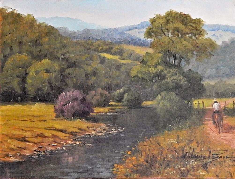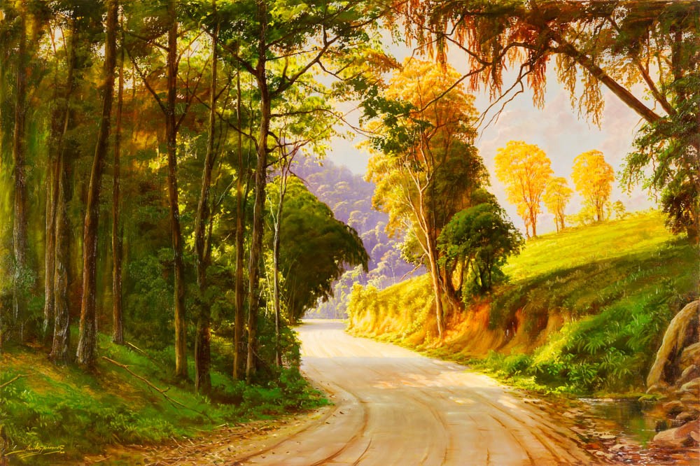 Paisagem Serrana com Estradinha e Pinheiros na Margem