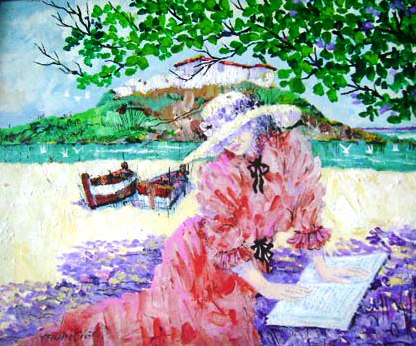 Nascido em Nantes, Auguste Toulmouche foi um artista de bastante presença nos Salões parisienses do século XIX. Ficou conhecido pelo retrato de belas mulheres em ambientes de luxo. Fez parte de um seleto grupo de artistas franceses como Jules Émile Saintin ( 1829-1894) e Charles Joseph Frederick Soulacroix ( n. 1825) que se especializaram, por assim dizer, no retrato de vestimentas de época dentro do enfoque da pintura de gênero. Tinha uma visão romântica da vida diária que seduzia pelo seu idealismo e sentimentalismo. Principalmente nos momentos do dia a dia das classes mais abastadas.