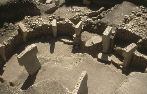 Antropólogos há muito assumem que a religião organizada surgiu como maneira de resolver problemas entre grupos à proporção que os nômades tiveram que conviver com outros grupos, quando todos se tornavam vizinhos sedentários, usufruindo das mesmas fontes de água limpa, de campos adjacentes, transformados em pequenos fazendeiros, responsáveis pela alimentação de seu grupo tribal. Vilarejos surgiram, imaginava-se, da necessidade de estruturar as ações comuns que melhoravam a vida do individuo: enterro dos mortos; abrigo à prova de animais para os membros do grupo, o uso de plantas medicinais, e assim por diante. E assumiu-se que só quando um uma visão de ordem celestial comum a um grande grupo apareceu, aí sim, vieram os templos, nas aldeias e nos vilarejos, um sistema religioso capaz de unir esses novos grupos. Mesmo assim, já havia alguns indícios, raros é verdade, de que talvez essa ordem não estivesse correta: há resquícios de aldeias datando de 13.000 anos aC , chamadas de Aldeias Natufianas [do período neolítico] que surgiram no Oriente médio, particularmente nas áreas que hoje cobrem os estados de Israel e Palestina, Líbano, Jordão e oeste da Síria. Os habitantes dessas aldeias, que viviam em lugar permanente, não eram agricultores, eram colhedores de sementes, de trigo, cevada e centeio, assim como caçadores de gazelas. Como o professor Ofer Bar-Yosef, da Universidade de Harvard apontou, a descoberta dessas aldeias foi “um grande sinal de aviso que deveríamos mudar nossas idéias”. Mas essas aldeias neolíticas começaram a desaparecer por volta de 10.200 aC, quando houve uma pequena idade do gelo, com a queda da temperatura local por mais ou menos 11º centígrados. As aldeias Natufianas certamente sugerem que a organização em aldeias veio anterior à agricultura.