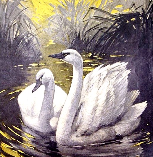 Cisnes, ilustração de R. Bruce Horsfall, para a revista American Girl, agosto de 1936.–