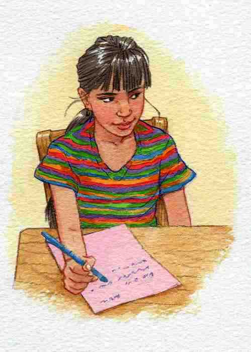 — Tomai este breve, cuja cor exprime as esperanças do coração daquele menino. Ele contém a vossa esmeralda: se tendes bastante força para ser constante e amar para sempre aquele bom anjo, dai-lho, a fim de que ele o guarde com desvelo.